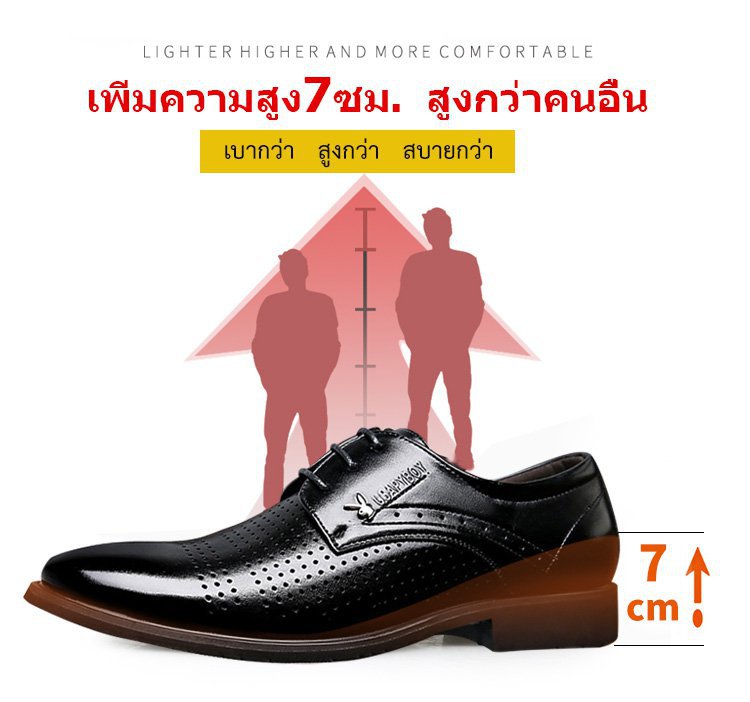 【รองเท้าจำเป้นของสุภาพบุรุษ!!】 ดีไซน์เสริมส้นด้านใน ส้นสูง 7 ซม. เดินสบาย เนื้อหนังละเอียด นุ่มนวล ไม่กัดเท้า ไม่เหม็นเท้า จัดส่งที่เป็นความลับ จัดส่งฟรี