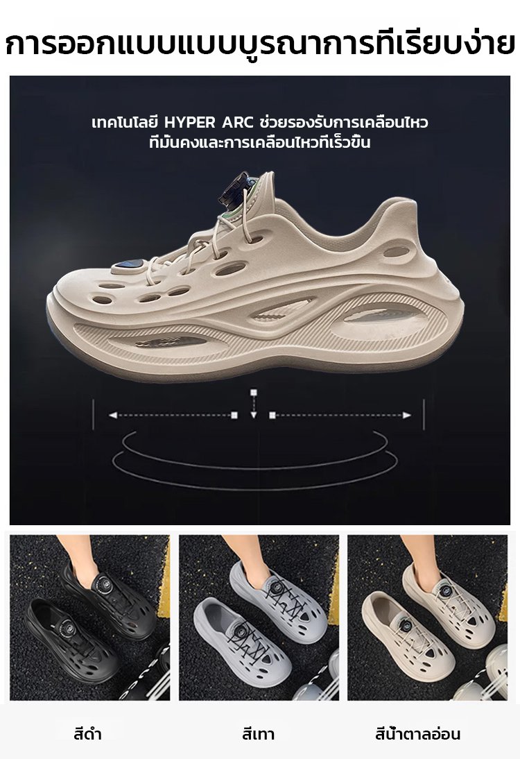 【ไม่ต้องผูกเชือก】รองเท้าฉลุลลายลำลองผู้ชายแบบมีปุ่มหมุนกันลื่นได้