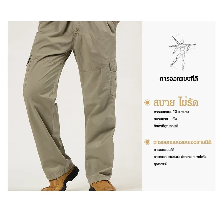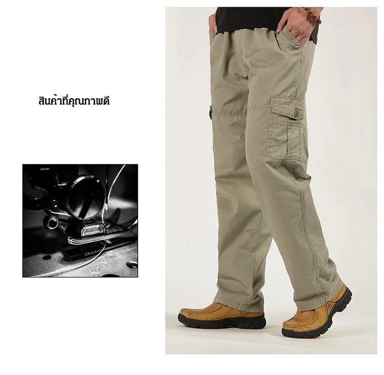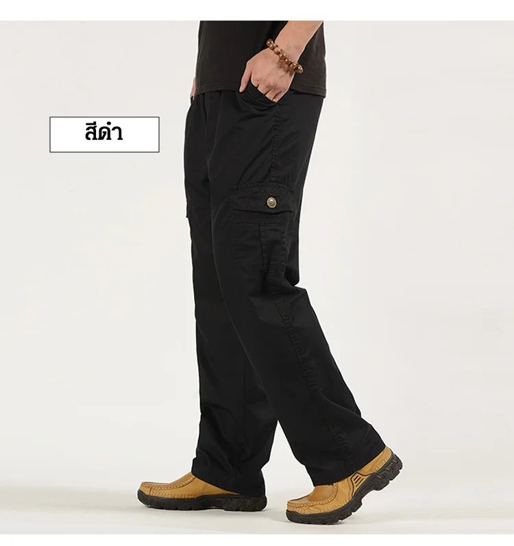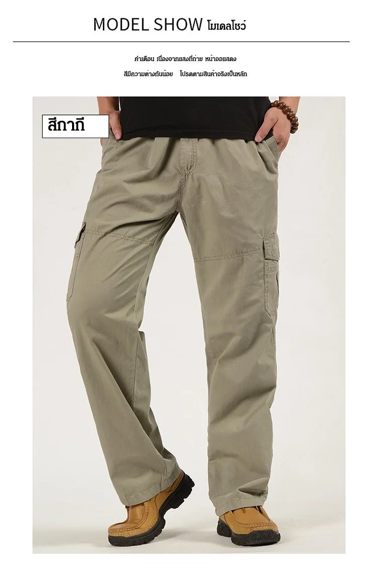 กางเกงขายาวทรงกระบอกลำลองผู้ชายผ้าฝ้ายแท้ ผ้าฝ้าย 100% ระบายอากาศ ซับเหงื่อ เอวยางยืด กันขีดข่วน ทนสึกหรอ มี 4 สีให้เลือก ภายใน 130 กก.ใส่ได้ ไม่เลือกอายุ ไม่เลือกหุ่น ใส่แล้วดูอ่อนกว่าวัย