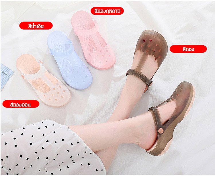รองเท้าแตะฉลุ พื้นหนา กันลื่น สีทึบ